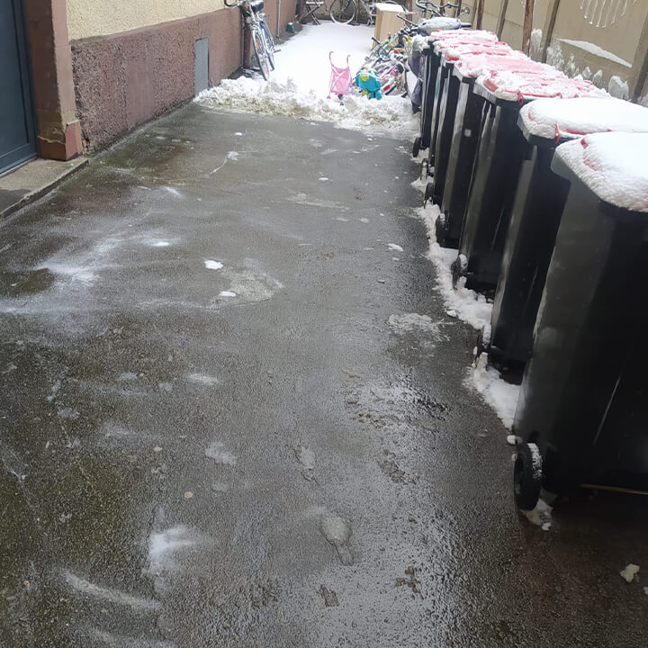 Die Eisglättebeseitigung in Pforzheim von Proctes bietet Ihnen absolute Sicherheit vor gefährlichem Glatteis. Wir nutzen dafür ein spezielles Streusalz, welches effektiv gegen Frost auf Gehwegen ist. Die Wirkung ist sofort und langanhaltend. Unsere Fachleute wissen ganz genau, welche Menge an Streusalz benötigt wird, um die beste Wirkung zu erzielen und nicht unnötig Streugut zu verschwenden. Es ist uns dabei extrem wichtig, nicht die Umwelt zu belasten und die Gehwege selbst im Winter so sauber wie möglich zu halten.