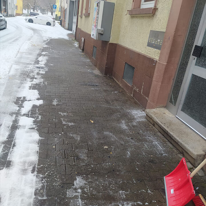Das Räumen von Schnee und Streuen in Pforzheim wird dank Proctes zu einem Kinderspiel. Wir befreien Ihre Gehwege komplett und regelmäßig von Schnee und Glatteis. Dadurch wird Sicherheit auf Ihrem Grundstück, Gehwegen und Parkplätzen gewährleistet. Auf kleinen Flächen nutzen wir klassische Schneeschaufeln. Sobald es sich um größere Bereiche handelt, kommen die Schneefräsen zum Einsatz. Nach dem Entfernen des Schnees verteilen wir das Streugut auf den begehbaren Flächen, damit jegliches Glatteis schmilzt und die Entstehung von neuem Frost vorgebeugt wird.